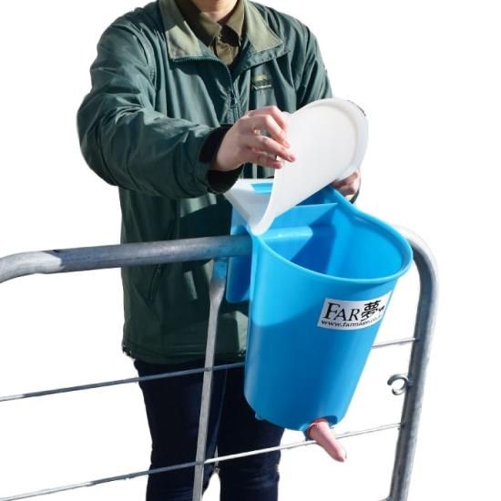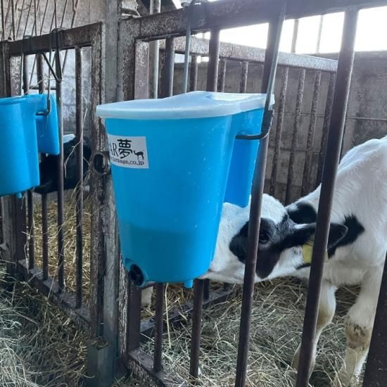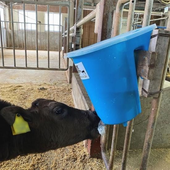 哺育牛が常時10〜20頭ぐらいおり、哺乳瓶で2時間ぐらいかかっていた。今はこちらのバケツ3個使って1時間程度でおわるようになり、とても助かっている。前より下痢や誤嚥も減ったようん感じるね。