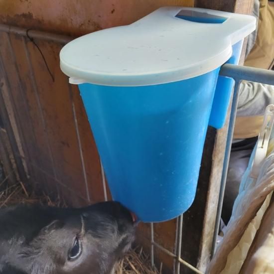 牛によって飲むスピードが違う、特にゆっくり飲む牛に対しては、シリコンカバーがあると保温できてとてもよかった!台車にのせて運ぶので、こぼれにくい点も良い。